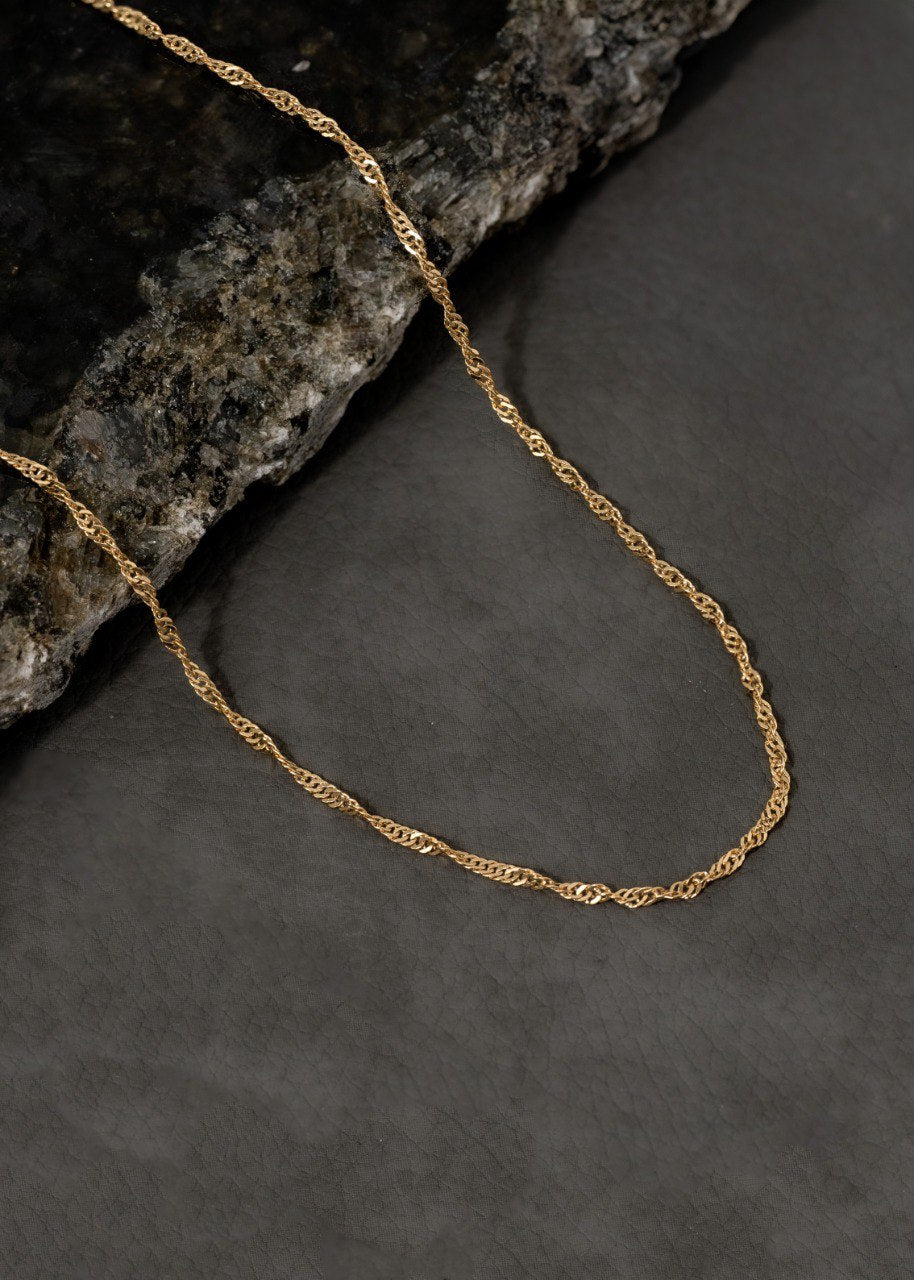 Gracias a su triple capa de oro 18K en su composición, nuestras cadenas son resistentes al uso diario y están diseñadas para mantener su esplendor. Además, son antialérgicas y libres de níquel, pensando siempre en tu comodidad y bienestar. Ya sea que la uses sola, con tu dije favorito o combinándola para crear capas, nuestras cadenas te brindan el diseño excepcional y la calidad 100% garantizada que esperas de EAJewelry.