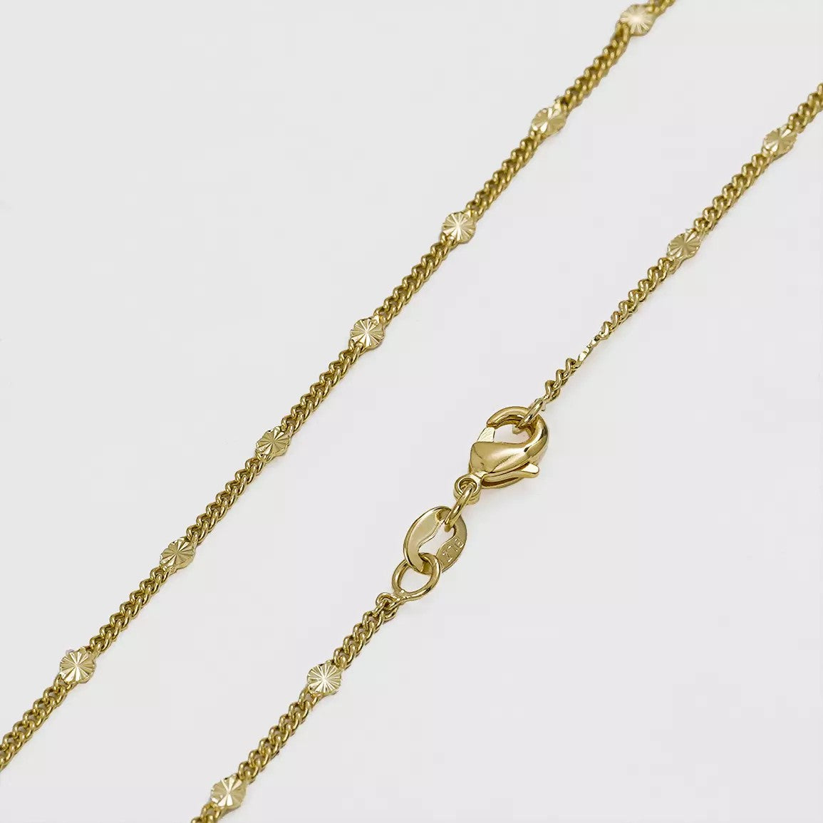Gracias a su triple capa de oro 18K en su composición, nuestras cadenas son resistentes al uso diario y están diseñadas para mantener su esplendor. Además, son antialérgicas y libres de níquel, pensando siempre en tu comodidad y bienestar. Ya sea que la uses sola, con tu dije favorito o combinándola para crear capas, nuestras cadenas te brindan el diseño excepcional y la calidad 100% garantizada que esperas de EAJewelry.