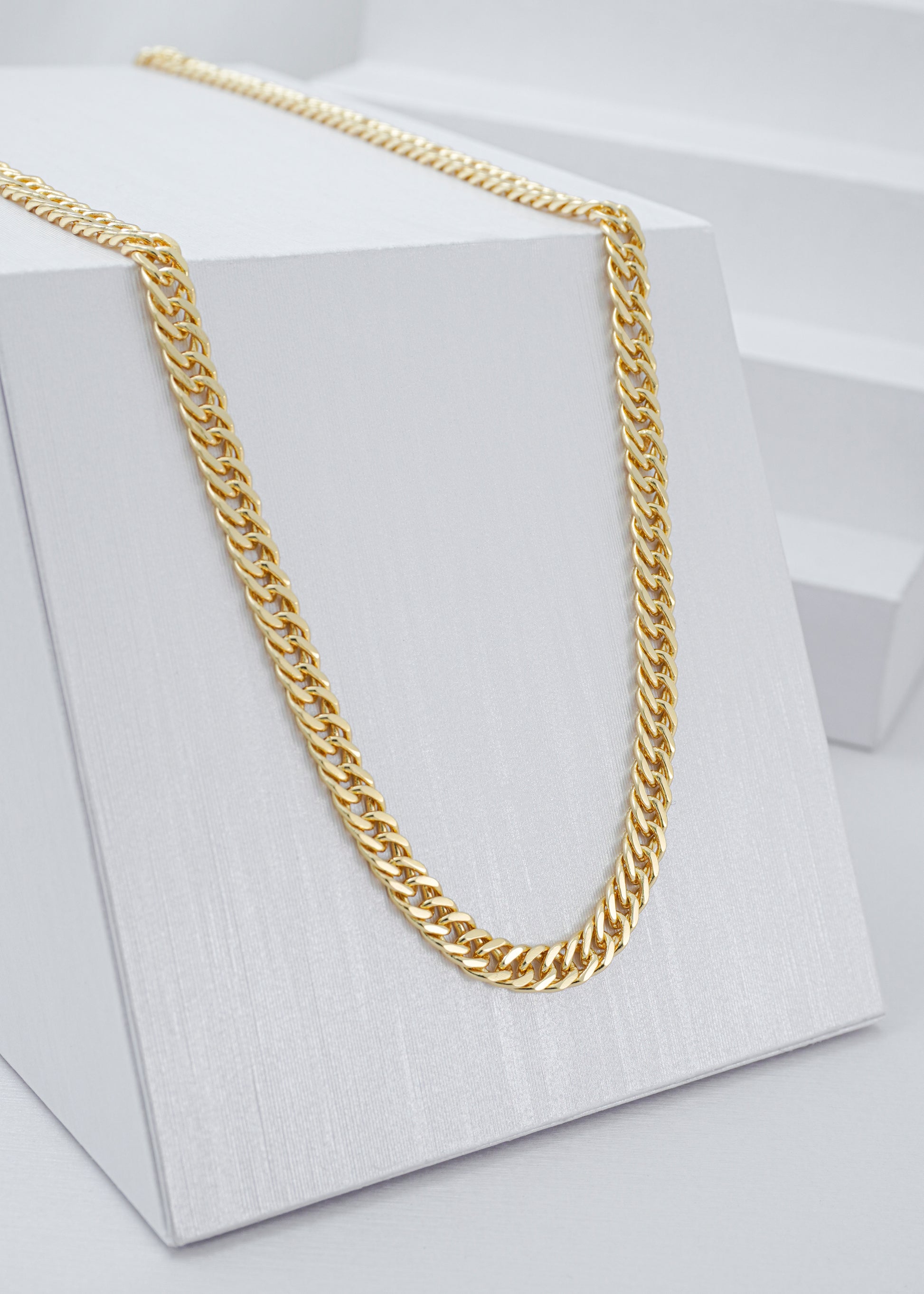 Gracias a su triple capa de oro 18K en su composición, nuestras cadenas son resistentes al uso diario y están diseñadas para mantener su esplendor. Además, son antialérgicas y libres de níquel, pensando siempre en tu comodidad y bienestar. Ya sea que la uses sola, con tu dije favorito o combinándola para crear capas, nuestras cadenas te brindan el diseño excepcional y la calidad 100% garantizada que esperas de EAJewelry.