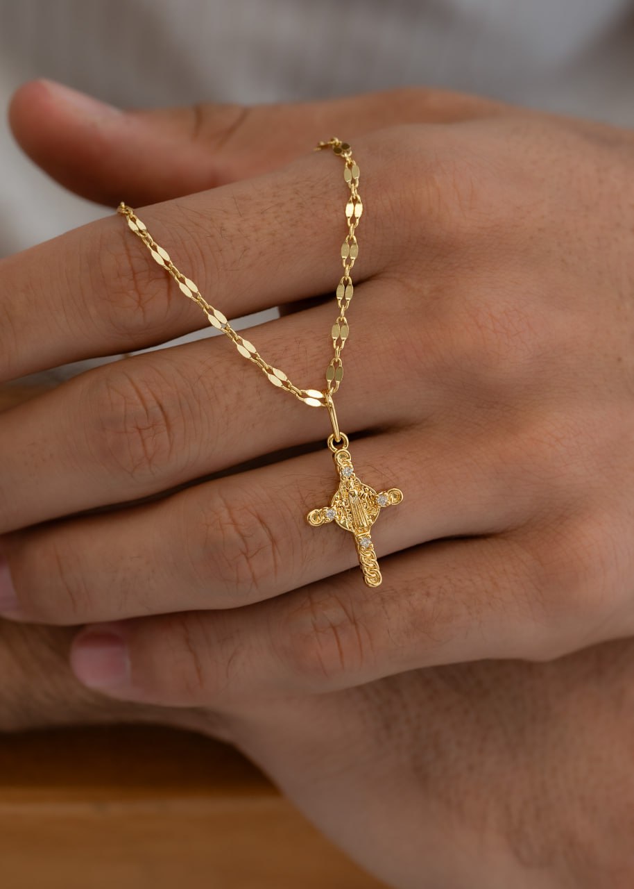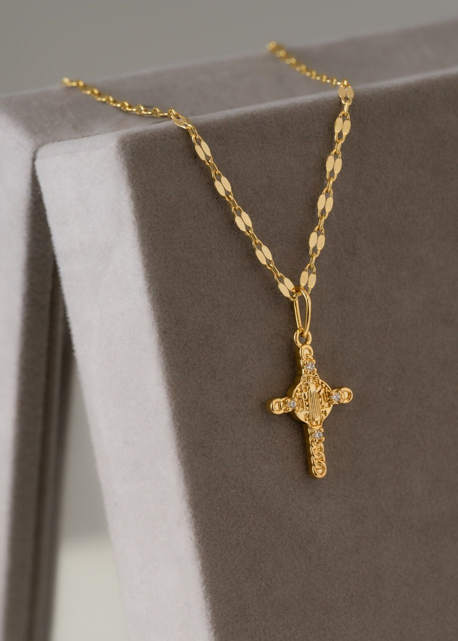 Combo Hombre Cadena Espejo 65cm con dije Cruz San Benito