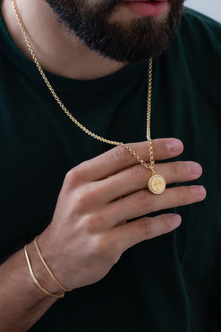 Combo Hombre Cadena Aros 3mm 65cm + Dije San Benito Circonias