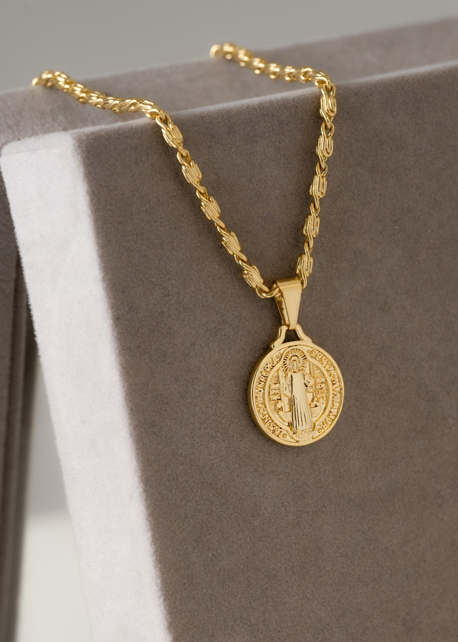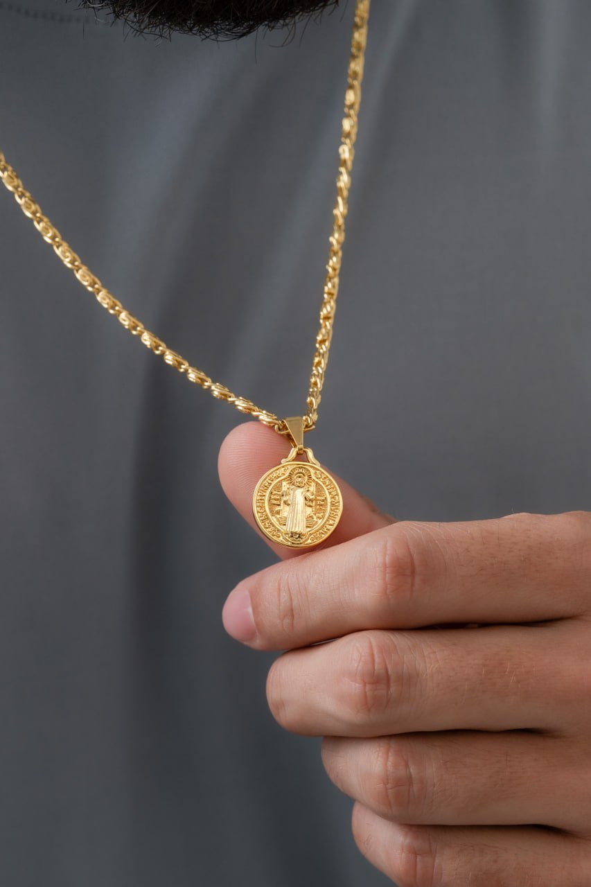 Combo Hombre Cadena Caracol Gruesa + Dije Medalla San Benito