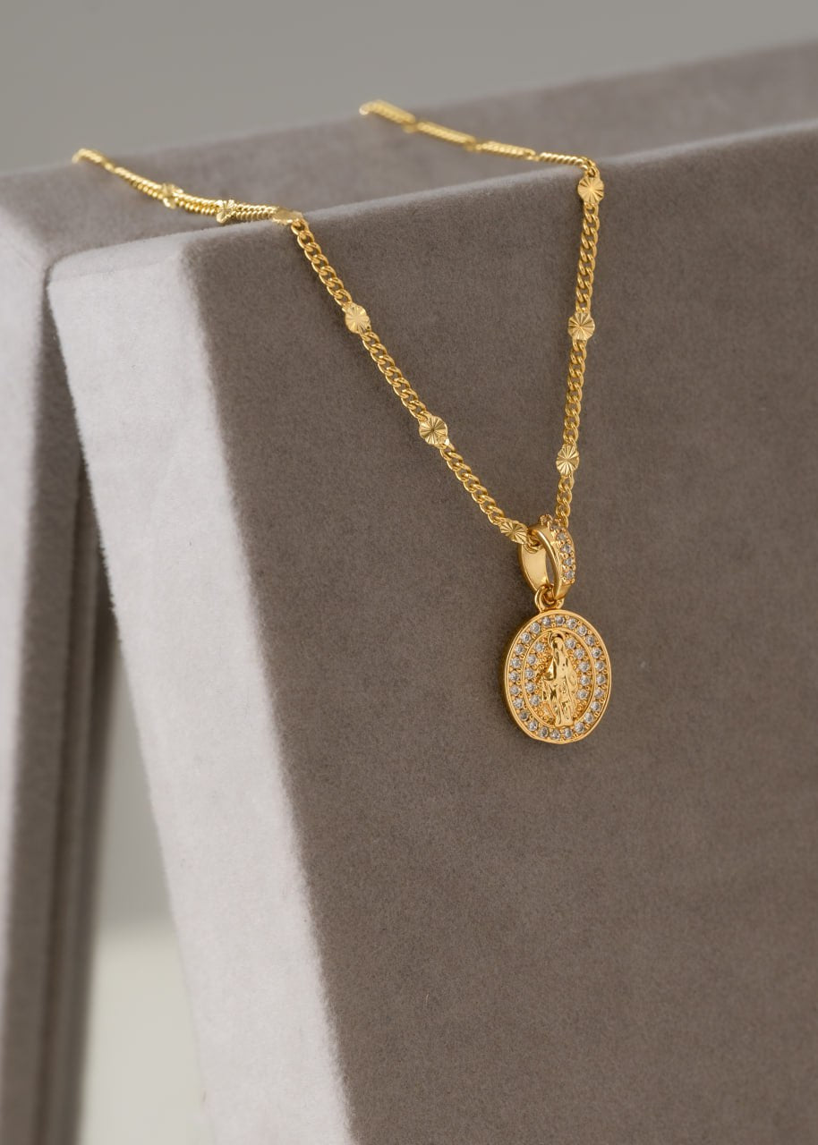 Combo Hombre Cadena Cubana Sol 65cm + Dije Milagrosa Circonia