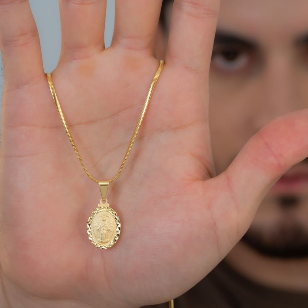 Combo Hombre Cadena Serpiente + Dije Ángel Custodio