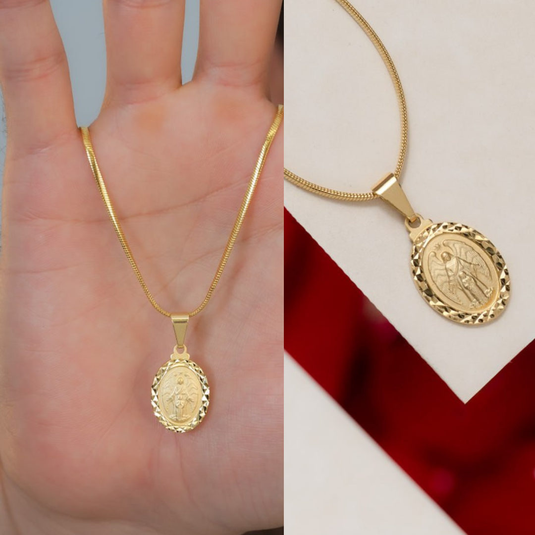 Cadena Serpiente de movimiento hipnótico + Dije Ángel Custodio de protección eterna. Tu guardián personal con el estilo que mereces. Libre de níquel, seguro para ti.