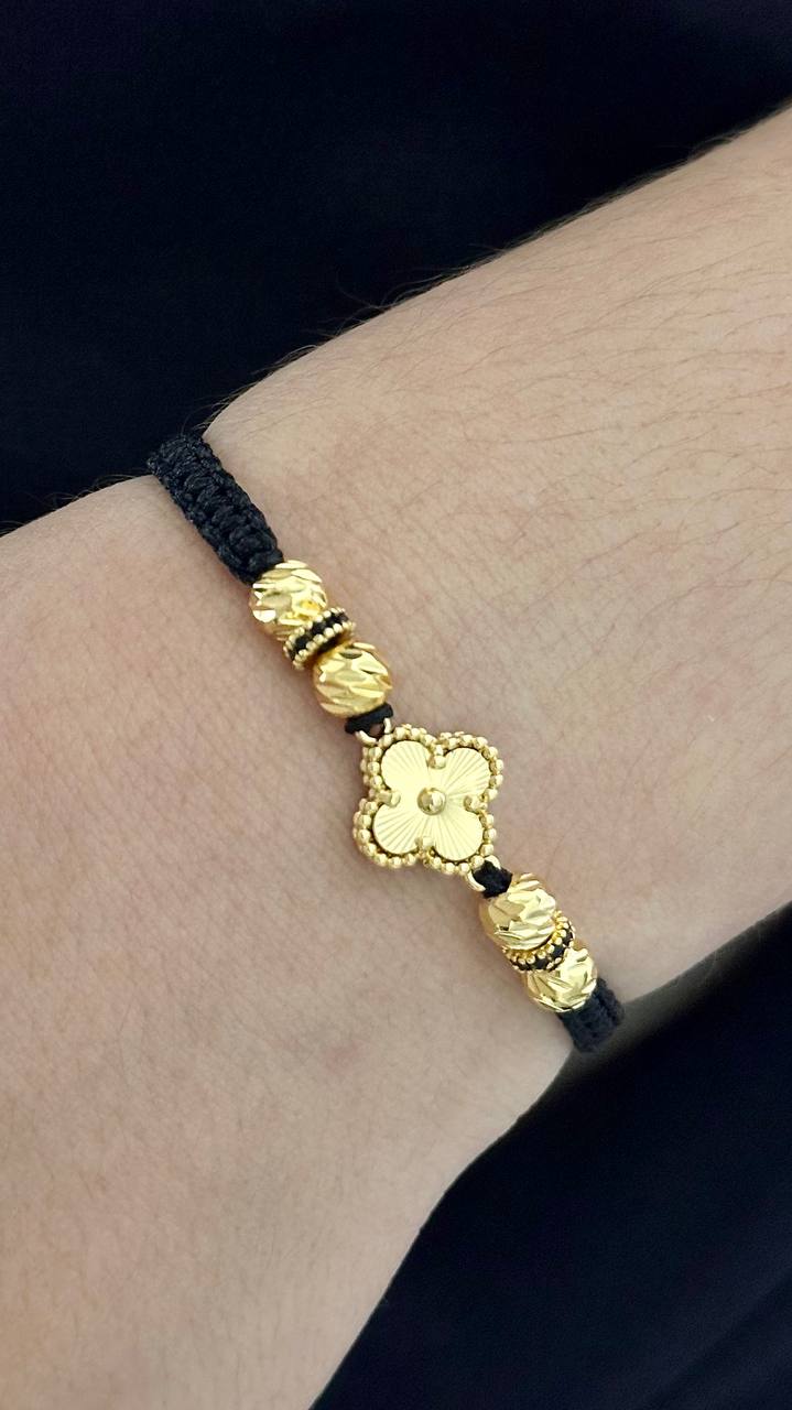 Manilla tejida con centro del NUEVO herraje Trébol 🤩 Acompañado por balines en diseño italy calibre 6mm y separados por herrajes rondeles calibre 5mm con circones negros ⚫️