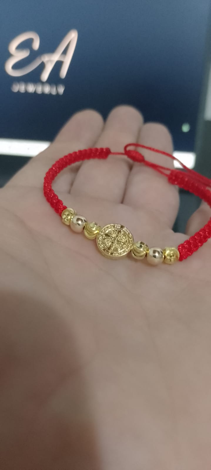 Lleva contigo un símbolo de fe y estilo con nuestra Pulsera San Benito. Con un diseño tejido y un medallón en oro laminado 18K, esta joya es la fusión perfecta entre espiritualidad y elegancia. Es antialérgica, duradera y cuenta con la calidad de EA Jewelry. ¡Protege tu camino con estilo!