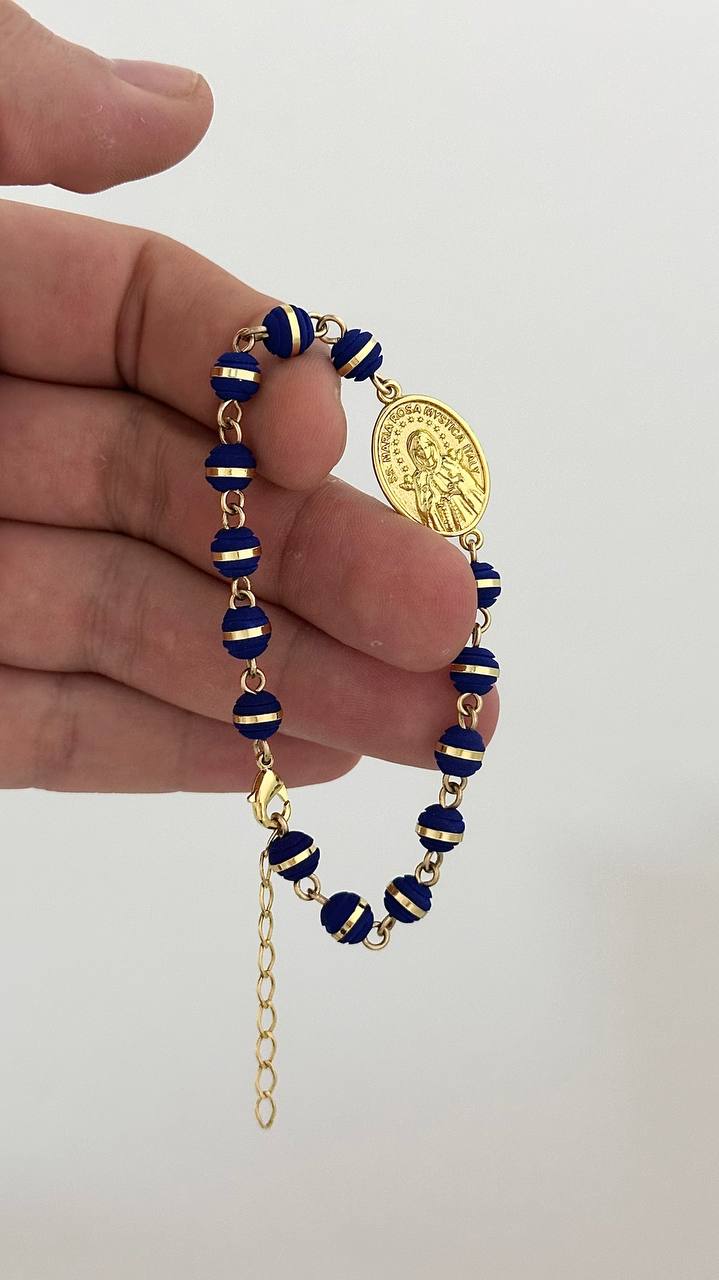 con neoprenos argollados 6mm y centro del herraje de la Virgen Rosa Mística.