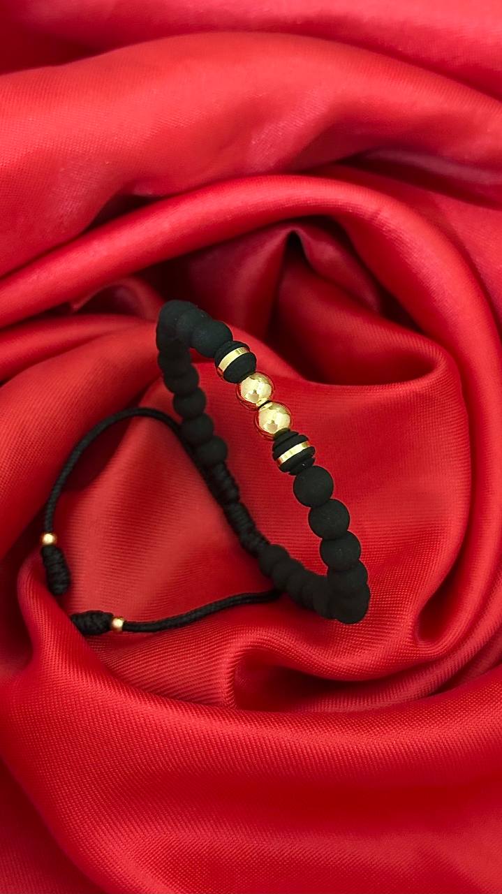 Manilla elaborada en calibre 6mm a partir de neoprenos lisos, neoprenos argollados y balines diseño liso en tono amarillo
